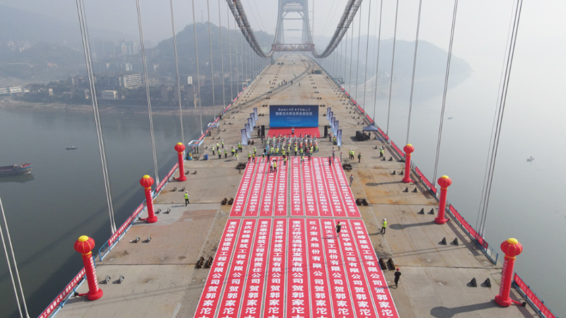 3月15日,隨著最后一節段鋼桁梁S8的成功吊裝,全國最大跨度公軌兩用懸索橋——重慶郭家沱長江大橋成功合龍,該橋采用巨力索具預應力錨固系統。郭家沱長江大橋項目是重慶市級重點工程,也是重慶快速路“六縱線”跨長江節點工程。該項目線路北起江北郭家沱,南接南岸峽口鎮,全長6.2公里,由花紅灣立交、郭家沱長江大橋、峽口立交三部分組成。