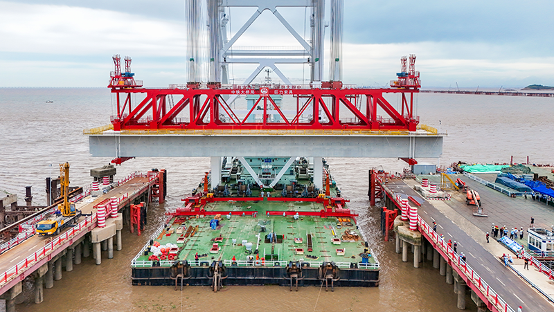 9月27日15時,隨著“天一號”運架一體船與巨力索具預制箱梁吊具將重達2800噸的新一代“世界梁王”在杭州灣海域順利架設,世界最長高速鐵路跨海大橋——杭州灣跨海鐵路大橋全面進入架梁施工新階段,為后續大規模開展海上架梁作業打下了堅實基礎。