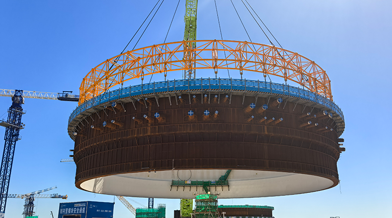 金七門核電1號機組鋼結構安全殼鋼襯里模塊經過4個多小時的緊張作業平穩落位,巨力索具環形吊具為此次吊裝提供了關鍵保障。