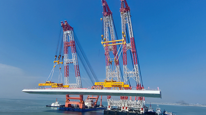 12月20日下午,廈金大橋(廈門段)建設(shè)項目迎來重大施工節(jié)點,由中國中鐵承建,中鐵大橋局負(fù)責(zé)吊裝的全橋首榀海上裝配式大節(jié)段鋼箱梁吊裝順利完成,本次吊裝采用的吊索具產(chǎn)品均由巨力索具提供。