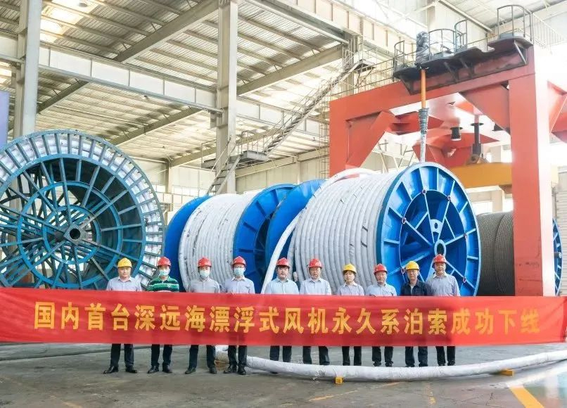 全球首臺抗臺風(fēng)型漂浮式海上風(fēng)電機組與我國首個漂浮式海上風(fēng)電平臺、國內(nèi)首套海上漂浮式風(fēng)機永久系泊索共同組成“三峽引領(lǐng)號”,單機容量5.5兆瓦,由三峽能源牽頭,聯(lián)合國內(nèi)科研機構(gòu)以及風(fēng)機廠商自主研發(fā),巨力索具承擔(dān)此次永久系泊索研發(fā)生產(chǎn)任務(wù)。2021年5月25日,國內(nèi)首套海上漂浮式風(fēng)機永久系泊索順利通過三峽能源、三峽上海院、惠生重工項目負(fù)責(zé)人的聯(lián)合驗收。該套系泊索應(yīng)用在全球首臺抗臺風(fēng)型浮式海上風(fēng)機,為后續(xù)我國深遠(yuǎn)海海上風(fēng)電項目的開發(fā)以及海上風(fēng)電與海洋牧場、海水制氫等產(chǎn)業(yè)的融合發(fā)展奠定堅實基礎(chǔ)。