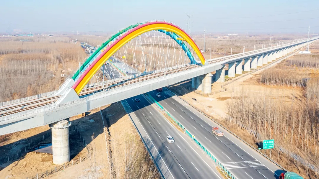 “花式跨越”彩虹橋——京雄城際鐵路跨大廣高速系桿拱橋,是京雄城際鐵路的重要組成部分,對完善京津冀區(qū)域路網(wǎng)布局、構(gòu)建快速立體式交通體系有重要意義。巨力索具承接該橋上部結(jié)構(gòu)施工。