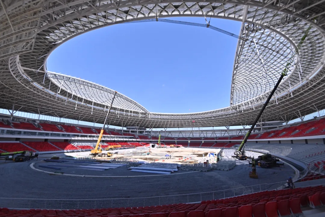 雄安體育中心的建設(shè)不僅注重美學(xué)設(shè)計,更融入了大量科技創(chuàng)新元素。國內(nèi)首創(chuàng)的“輪輻式張弦鋁合金網(wǎng)殼”屋頂體系,將單層網(wǎng)殼與索承張拉技術(shù)相融合,以輕盈之姿承載萬鈞之力。國內(nèi)首創(chuàng)的“漣漪懸索網(wǎng)格結(jié)構(gòu)”,結(jié)合懸索、網(wǎng)格與新型材料技術(shù),不僅實現(xiàn)了大跨度空間覆蓋,還以獨特的形態(tài)呼應(yīng)了雄安新區(qū)的生態(tài)理念。
