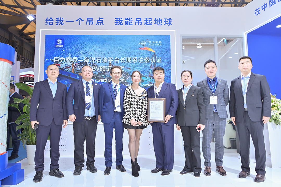 12月2日,2025中國國際海事會展(MARINTEC CHINA 2025)盛大開幕。開展首日,全球領先的檢驗認證機構法國船級社(Bureau Veritas,簡稱BV)為巨力索具舉行“海洋石油平臺長期系泊索”專項認證證書頒證儀式,巨力索具總裁楊超親臨現場,代表公司接受了這份象征國際高標準認可的重要證書。