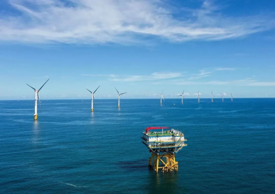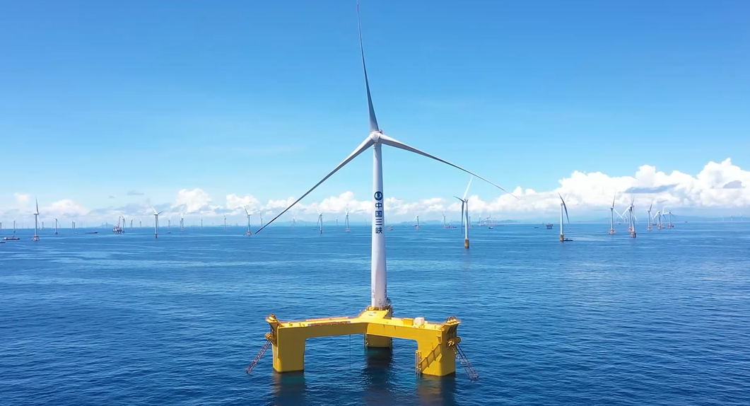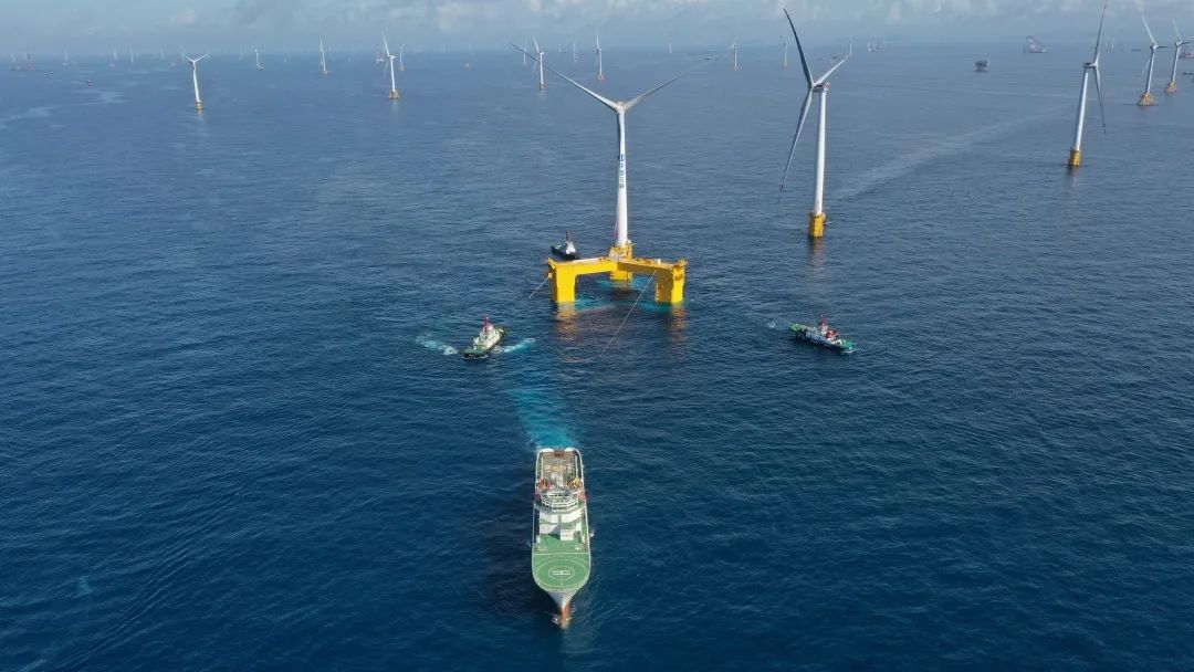 12月7日13時37分,全球首臺抗臺風型漂浮式海上風電機組,在廣東陽江海上風電場成功并網(wǎng)發(fā)電。