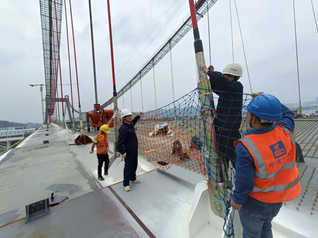 節后開工第一天,廣西橫州特大橋項目現場一派熱火朝天。巨力索具主要負責該項目纜索與鋼箱梁施工安裝,為確保施工進度,浦江纜索公司員工堅守崗位,嚴守職責,克服環境等困難,穩步推進各項作業進度,以高質量工程建設助力公司高質量發展。