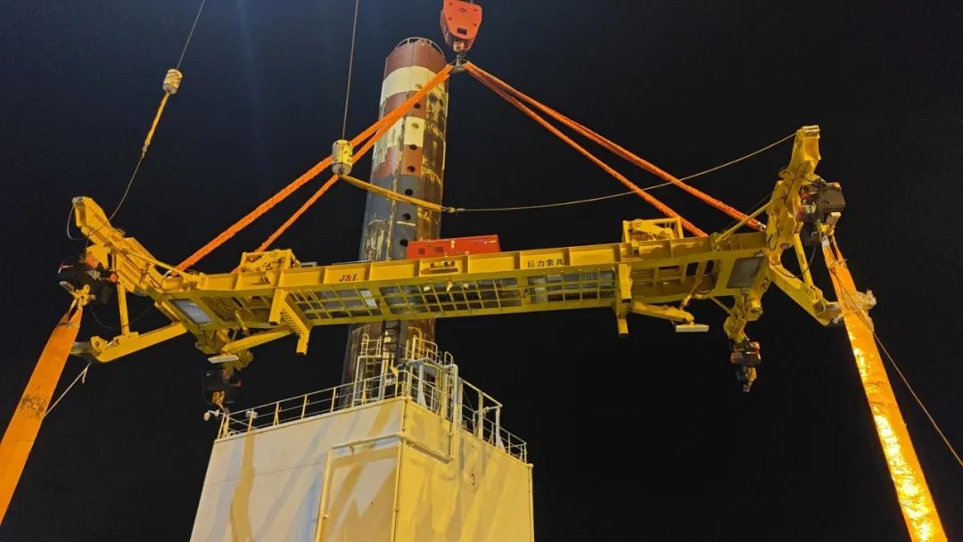 巨力索具為本次全程吊裝保駕護航,提供的50噸折疊式海上單葉片吊具實現(xiàn)單個風(fēng)電葉片在空中與輪轂的對接安裝。