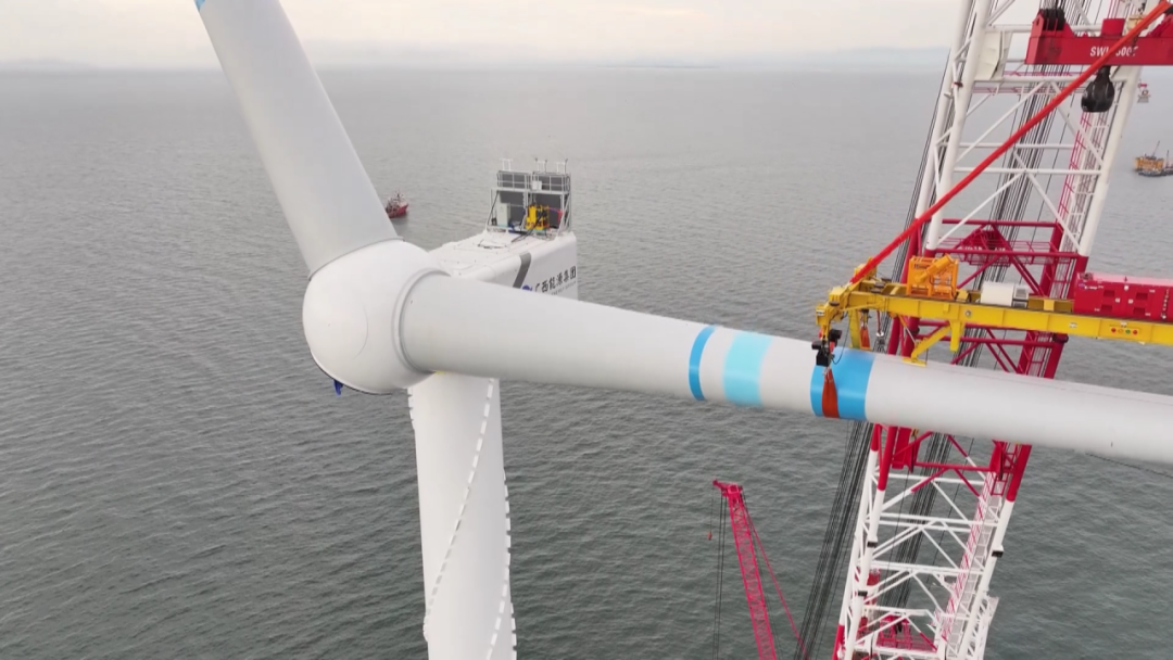 據(jù)悉,本次吊裝的風(fēng)電機組單支葉片長111.5米、重42噸,葉輪掃風(fēng)面積40627平方米。